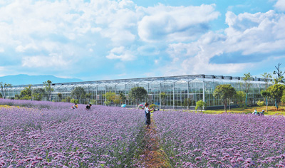 “四月鄉(xiāng)村”現(xiàn)代休閑農(nóng)業(yè)產(chǎn)業(yè)園馬鞭草花絢麗開放,吸引游客“打卡”體驗(yàn)。鄭 敏 攝
