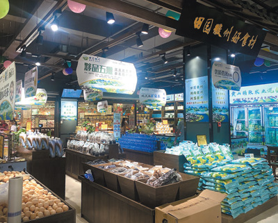 在黃山市綠色農(nóng)產(chǎn)品區(qū)域公用品牌“田園徽州”元一旗艦店,當(dāng)?shù)靥厣r(nóng)副產(chǎn)品琳瑯滿目。程央央 攝